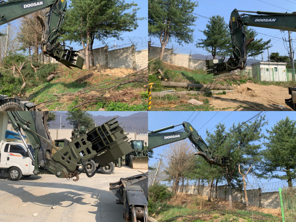 특허 제10-2840573호(굴삭기용 다기능 벌목장치)를 통해 절단·제초·파쇄를 동시에 수행할 수 있는 구조로 작업 효율을 극대화하였습니다.